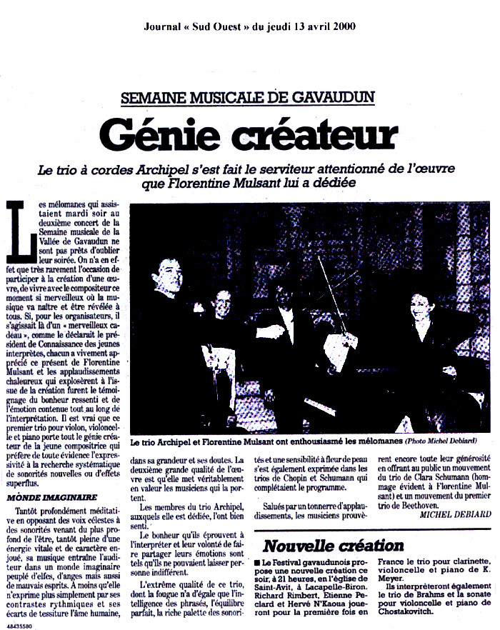 « Le Sud Ouest ». Michel Debiard. On IX-13-2000.