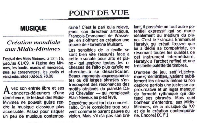 Le Soir (Bruxelles). X.F. On VIII-12-13-2000.