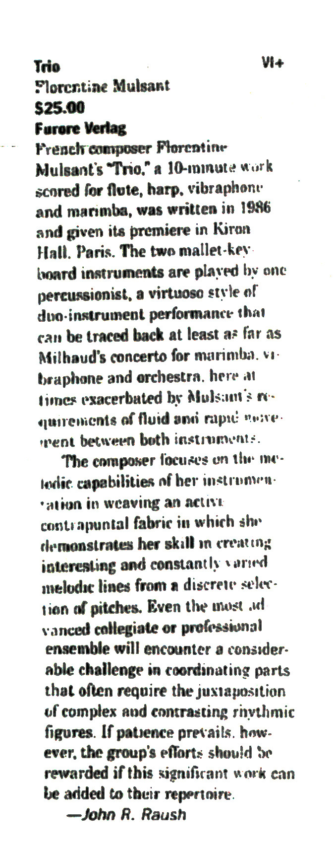 Revue trimestrielle "Traversière" entretien et partition de Florentine Mulsant. 2020
